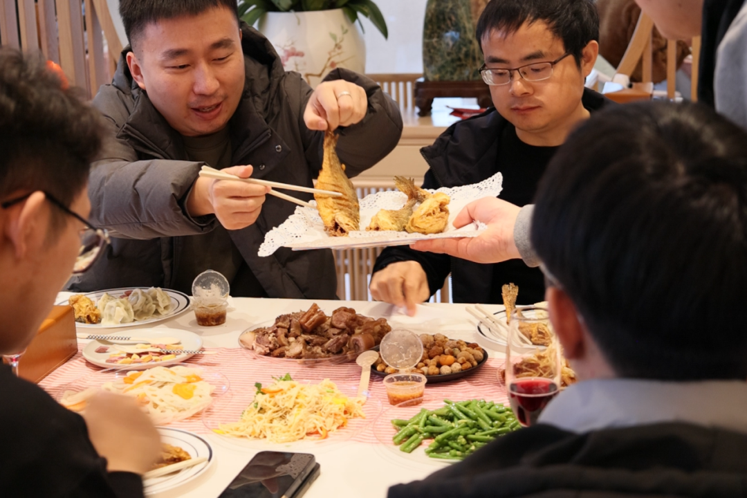 特别为大家准备了“龙角”-饺子、“龙头”-猪头肉、棋子豆和寓意美好的丰富菜肴(春天的菜芽鱼鲜