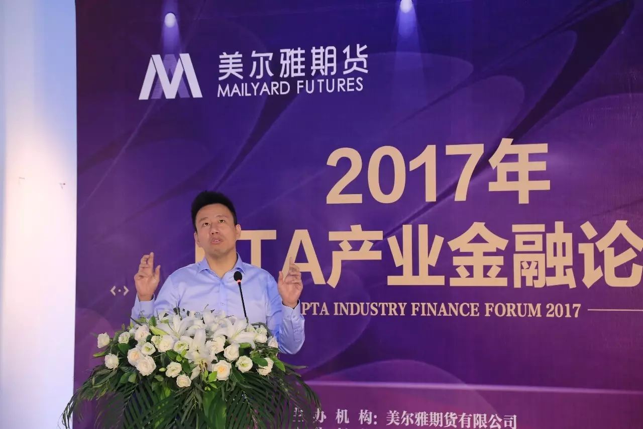 9月16日下午,由美尔雅期货有限公司、青岛嘉德瑞工贸有限公司共同举办的“2017年PTA产业金融论坛”,在美丽的青岛鲁商凯悦酒店举行。这次论坛旨在进一步推动PTA产业与金融融合,加强PTA市场与创新,促进PTA行业平台的交流。